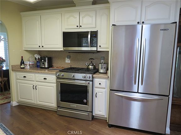 Put this Home on your Must See list. Everything is so nicely presented it will make you feel right at Home. Located on the Green Belt with wondering tree lined curving walk ways. This Home has been remodeled and updated with wood flooring, Dual pane windows and Plantation Shutters. Well Designed New Kitchen Cabinets and Top name stainless steel Appliances. All of the Appliances plus the Washer/Dryer are included. The Kitchen skylight adds a soft touch. The Pantry/Laundry room has its own special Glass panel Door. The large Dining /TV room, has its own skylight and is enhanced by a wall size mirror. Plus A sliding glass Door leads you to the Sun room/ Hobby or Office. Both Bathrooms have been updated, walk-in shower, skylight in Guest Bath. The main Bedroom features 2 Mirror Wardrobe closets, also plantation shutters. A vanity Dressing room leads you to the Main Bathroom. The Guest Bedroom has it own skylight and mirrored ward robe closet, also plantation shutters. A storage Shed is located in the attached covered Carport. The Furniture is negotiable. Call to see this Lovely Home Today.