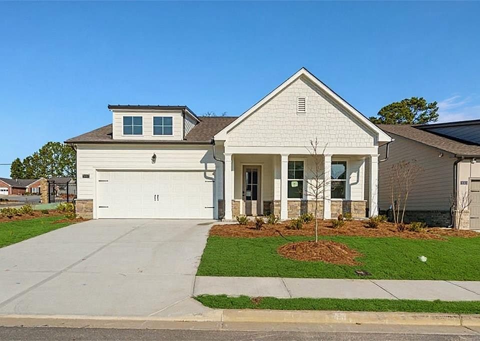 Introducing The Edison A, nestled in the charming 55+ active adult Kelly Preserve community. This spacious 2,001 sq ft ranch-style home is move-in ready and offers 3 bedrooms, 2 baths, with a 2-car garage. Enjoy the warmth of a linear fireplace with a chic shiplap finish in the open-concept living and dining areas. The gourmet kitchen, adorned with gleaming quartz countertops, white cabinets, and black hardware, is a chef's dream. Situated on a desirable corner lot, this home boasts a huge pantry and a vast covered patio perfect for entertaining. The private primary suite is a retreat, featuring an oversized closet with direct access to the laundry room. Elegant EVP floors flow throughout, adding a touch of sophistication. As a resident of Kelly Preserve, you'll benefit from a gated enclave, a pool and clubhouse, and professional lawn care. Plus, it's conveniently located near the Piedmont Eastside Medical Center and a beautiful nature reserve. Schedule a visit today during these convenient visiting hours: Visiting Hours: Mon., Tues., Thurs., Fri., Sat. - 10am - 6pm; Wed and Sun - 1pm- 6pm