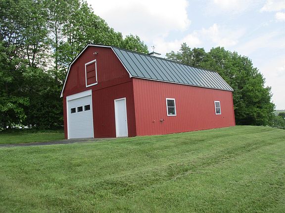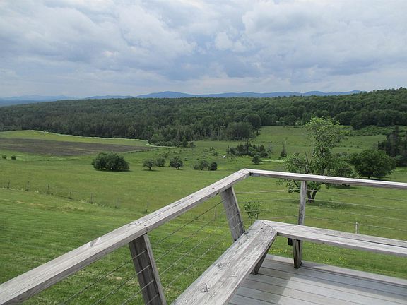 Magnificent location on Randolph Center's Ridge Rd. with stunning and spectacular views of the distant mountains to the west and south. Property has 5.00 surveyed open acres with gorgeous sunlight exposure. The home is 2/3 bedrooms with a primary bedroom with 3/4 bath and an additional full bath on the first floor. The living room space is open to the spacious eat in kitchen. Large windows and cozy wood stove. Nice front door foyer entrance, some updated flooring, partially finished basement with lots of future potential. Updated propane furnace, standing seam roof, and more. Excellent wrap around porch to take in the stunning outdoor setting! The home has a convenient 2 car garage underneath and an additional 24 x40 Gambrel Style Barn/Garage for workshop or additional storage. Incredible convenient location with paved driveway and on a paved road.