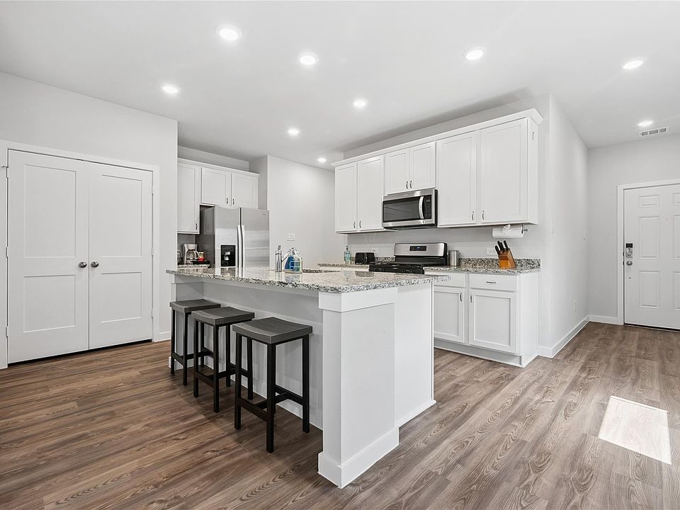 Fenced yardLush landscapingLarge kitchen islandPrivate primary suiteOpen-concept layout
