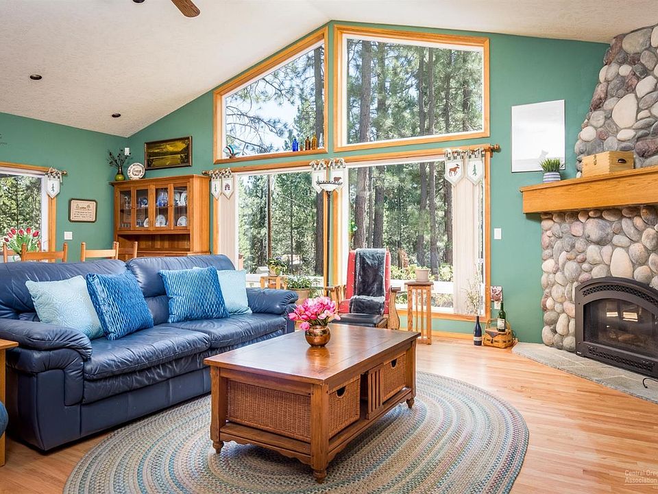 If you are looking for a spacious functional floor plan w/a little elbow room, this is the ideal spot! Single level living tucked off the street on this nicely treed 0.58-acre lot. From the moment you walk inside you are greeted by the floor to ceiling wall of windows & the river rock fireplace that look out onto the treed lot. You will appreciate & love the long list of improvements these owners have made since 2014. Just to name a few, carpeting, well, hybrid tankless hot water heater, hardwood flooring, fireplace, SS appliances, quartz counters, farmhouse sink. Master bedroom is complete w/fireplace & access to the large back deck w/ built in bench seating & covered area to escape the sun. Two add'l guest bdrms & bath are located on separate side of the home. The paved driveway & parking for a RV or other recreational vehicle. Oversized 2 car garage. Just 17 miles to Mt. Bachelor & less than 10 minutes to the Deschutes River & Sunriver Resort. Community boat dock. NO HOA dues