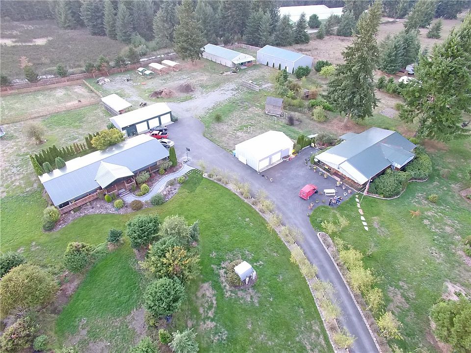 2 homes & 7 outbuildings. Many uses possible! Livestock, autostorage, materials? 40X70 barn wi 13 box stalls, 40X80 workshop with insulated tack rm & tall doors, 4 bay machine shed, 2 green houses and 2 extra large garages. Storage galore and great for animals and gardening. Fully fenced 5 ac. Landscaped/gated entry, asphalt driveway. Sprinkler system. Nice Main home, 1848 sq. ft. wi 3 bdrms, 2 bths. 2nd familymember home, 4 bdrms,2 bths. Water all you want, great well, bountiful & cold supply.
