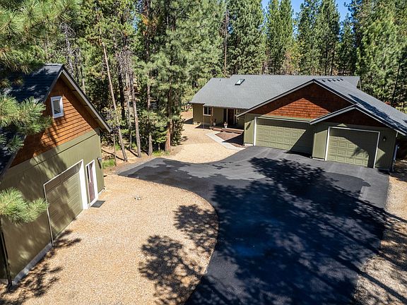 Nestled in a serene setting, this single-level gem located just outside SunRiver Resort, is a perfect blend of comfort & functionality, backing directly onto expansive USFS land for unparalleled privacy & natural beauty. The property is close to the Deschutes River & conveniently located near the road to Mt. Bachelor, w/ shopping close by. This meticulously maintained home features 3 bed/2 bath, including dual primary closets for ample storage space. Inside, the home offers a spacious great room concept, ideal for both everyday living & entertaining. The dedicated office space provides a quiet retreat. Enjoy the newly added partially covered outdoor entertainment patio w/ a built-in hot tub, perfect for gatherings. Car enthusiasts will appreciate the detached shop w/ Radiant Floor Heating, car lift & loft storage, providing space for projects. The property boasts a paved driveway equipped w/ convenient RV hookups & a sewer connection, making it an ideal spot for adventure enthusiasts!