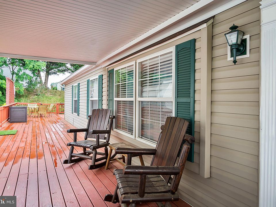 Be prepared to be wowed when you enter this updated mobile home. Kitchen updates include new plank flooring that extends into the living room, granite counter tops, modern backsplash, accent walls, and beautiful white cabinetry. Typical soaker tub in the primary bath has been removed and replaced with a shower and new vanity. Back and side wraparound deck is huge and lot backs up to a bank for unique privacy. All buyers must be park approved as part of the transaction process. Professional photos coming soon!