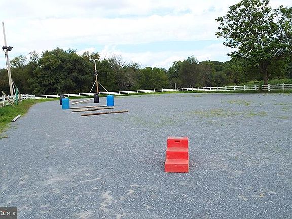 Fenced equestrian property currently used as boarding stable. Barn houses 18 12x12 stalls w/ rubber mats, 2 feed rooms, lounge area, & built in tack lockers. Riding areas include one round pen, full sz dressage ring stone dust outdoor w/ lighting, large cross country field w/ jumps, and access to 18mi of WSSE trails. Machine shed and workshop onsite, w/ commercial storage option. ****APPT ONLY! **