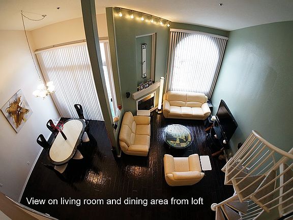 Top floor, corner unit with 2 bedrooms + HUGE loft overlooking the living room which could be an office, recreation room or whatever is needed. Kitchen with Island, gorgeous granite countertops, and stainless steel appliances. Open plan living/dining room with dramatic 17' ceilings and wood floors. Huge master bedroom with dramatic 14' ceilings. Good size 2nd bedroom. Bedrooms plus entryway have huge closets with custom built-ins. In-unit washer and dryer hookups. Central AC and heater with WIRELESS thermostat. Cozy fireplace in living room. Biometric door lock. Open your door with your finger. No keys needed! Balcony with space for BBQ. Rooftop pool! 2 underground tandem parking spaces + guest parking. Located in the heart of Granada Hills, walking distance or short drive to shopping centers. Nearby: Restaurants, Movie Theaters, 7/11, Starbucks, Walgreens, Ralphs, Trader Joe's, and many more! Close to Major Freeways: 118 Less than a mile; 405 less than two miles! 118 gives you access to 405, I-5, 170, and 210! Many choices to bypass traffic when needed! Park and community center 0.2 miles away!
