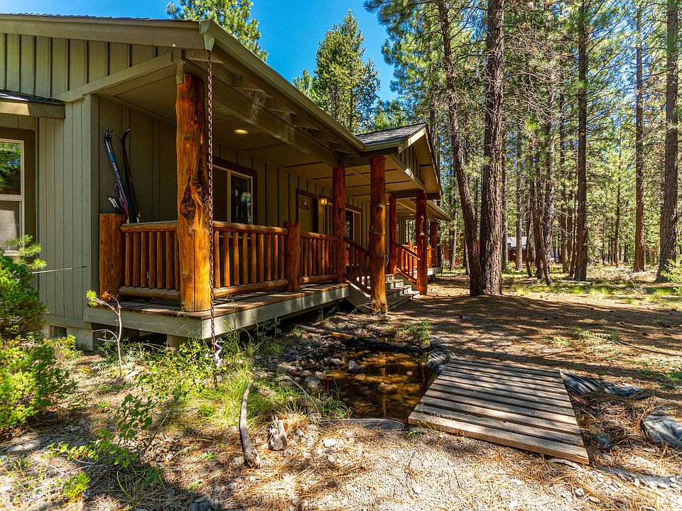 Just minutes from the river, this Bend home is ideal for enjoying all activities that Central Oregon has to offer. Walk into the great room with log beams, skylights and a propane river rock fireplace. V-G fir French doors to primary-suite, walk-in closet with built-ins. Charming bonus room plus a sun - room with AC and heat, large laundry room with a generous pantry. You will have plenty of room for toys with a triple car garage. Enjoy the private outdoor oasis that feature a pond with small bridge, mature trees and fenced back yard for added privacy. Seller to credit 10k to buyer at closing to buy down interest rates points or use towards closing costs. No commission paid on seller concessions.
