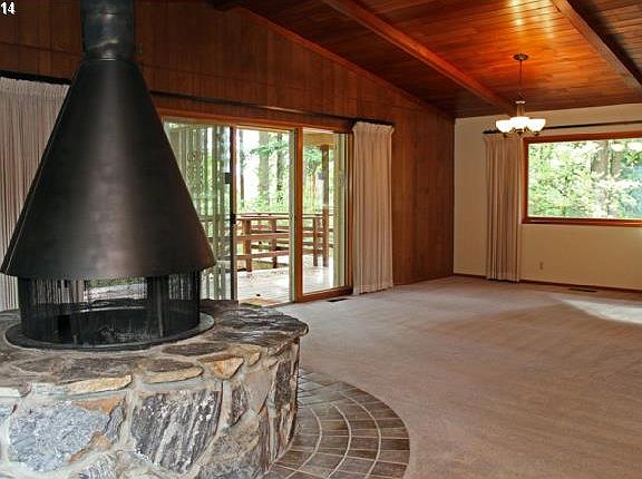 Forested land with trails and a seasonal creek, privacy and a home with Vaulted ceilings, Fireplace, Wood features - you'll feel like you have your own forest lodge! Slider to the 3/4 deck for enjoying the natural views. 30x30 insulated shop for projects, tool shed/dog run, covered RV parking & pad w/ power.