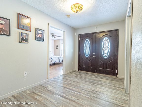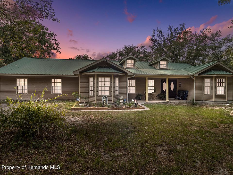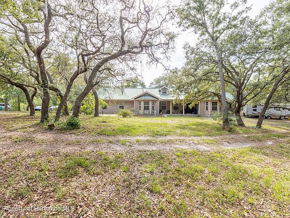 Active with Contract - Custom home with metal roof situated on 3.85 acres of beautiful property in a serene country setting with 2410 square feet of living space. This home features an updated kitchen with new cabinets, granite counter-tops, island with gas cooktop, decorative vented hood, double wall oven, and nook area. 3 bedrooms with the master suite boasting a jetted tub, walk in shower, and double sinks. Bedroom 2 features a private full bath and is close by bedroom 3 and possible 4th bedroom/office/study room. Separate dining room, living room, den/game room and inside laundry room complete this spacious floor plan. Outside you will find a 14x33 screened lanai, an above ground pool, and 2 sheds. Close to all amenities including, schools, shopping, restaurants, medical facilities, boating, fishing, attractions, airports, and Florida's beautiful beaches. Easy commute to Tampa and Orlando. Make this your home today!