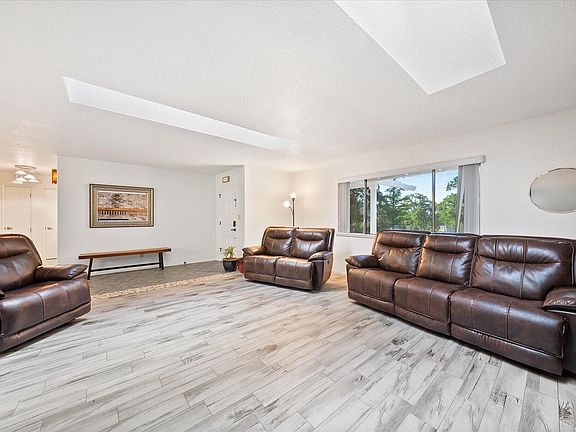 A sliding glass door seamlessly connects the indoor living to the park-like backyard featuring mature oak trees, blooming flowers, and a semi-enclosed area for a vegetable garden. With over an acre of usable land, there is limitless potential for a pool, ADU or shop.