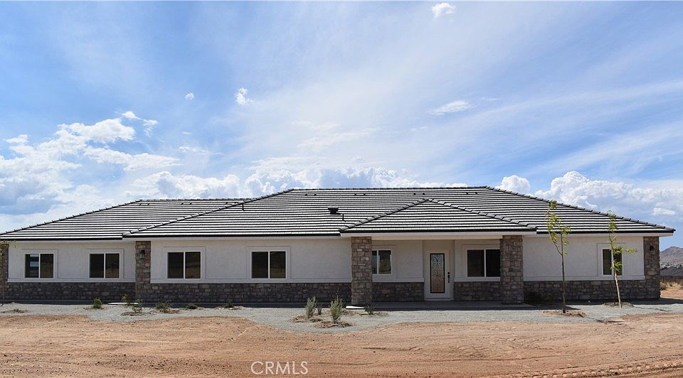 Beautiful new build on Pauhaska Road in Apple Valley, California. The view lot features 1.9 acres. The home is 2095 square feet. There are 4 bedrooms, one master bathroom with a freestanding tub, and one additional bathroom. The home has 9-foot ceilings, is sheer paneled and earthquake proof. The kitchen includes a pantry and a KitchenAid dishwasher. There is propane subbed outside, and a BBQ platform. It also contains subbed out features for electrical in the back yard for lighting. There is a 3-car garage with insulated doors and an oversized solar system, stucco eaves and a 30-year roof warranty. The seller will set the meter and pull power on or about October 20-30, 2025.