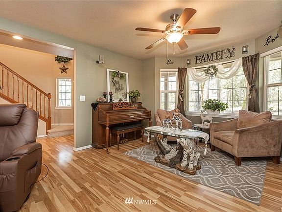 Park-like setting in shadows of Lawrence Lake Comm, just over 2 acres at the end of a cul de sac is the forever home you've been searching for. Roomy living rm w/ceiling fans, cozy wood-burning stove & oversized bay windows. Meals are easy in the u-shaped kitchen w/breakfast bar & plenty of counter&cabinet space. Adjacent to the dining area is a bonus rm for your office/mancave/den. Spacious Master bedrm boasts palladian windows, vaulted ceilings, 2 tone paint w/chair rail molding & a personal full bathrm. Laminate throughout, tile in the bathrms. Covered front deck, balcony upstairs & back patio provide multiple areas to lounge, relax & entertain outside. Soak in the hottub or in the lake down the street. Close to JBLM, Olympia, Lacey