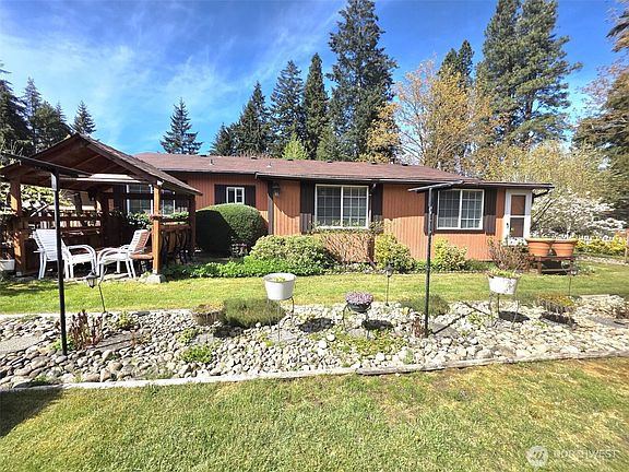 Lovingly cared for mobile in a beautiful setting! Open concept kitchen flows into formal dining room and casual eating area. New windows, flooring and lots of tile counter and back splash upgrades. Detached shop with carport, and a rustic outdoor kitchen out back. Shop has a 1 bedroom with bath unit, walk in pantry and a deluxe sauna! Enclosed side porch, lots of parking space and a pretty gazebo seating area. Gorgeous lot with abundant plants and flowers. Buffered from the street with large trees, this property is its own little oasis!