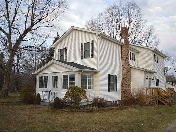 Large 4 BR/ 2 Full bath home sitting on 1+ acres with fenced in yard and detached 1 car garage. Lots of storage throughout, including unfinished basement and crawl area. WBF and WB stove have checked out and are functional. Large eat in kitchen, rear deck and vinyl windows and siding area low maintenance bonus. Must see to appreciate