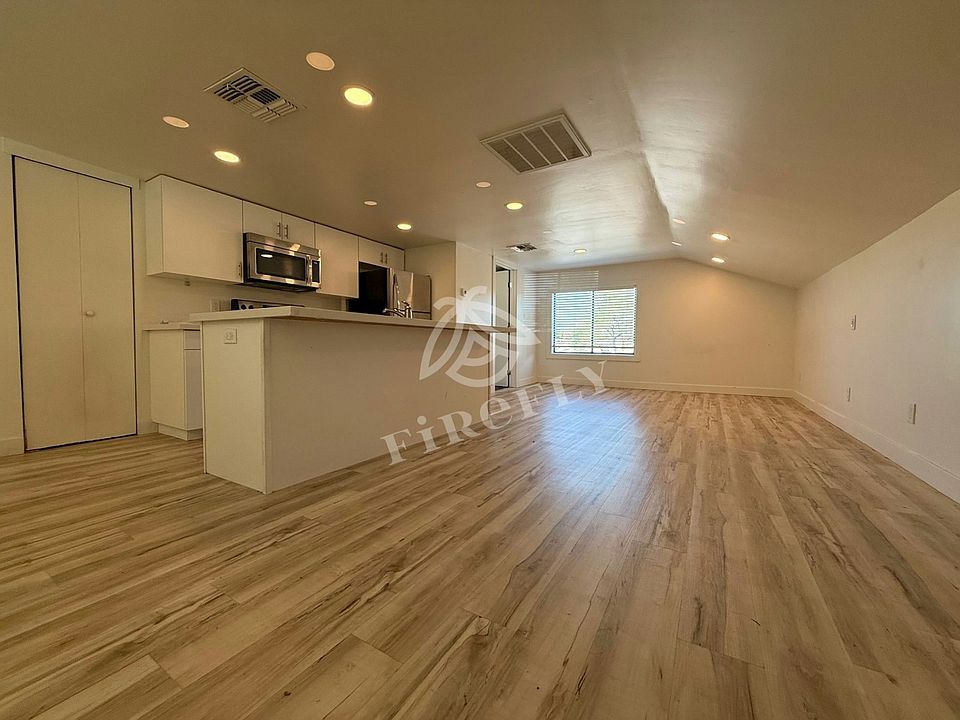 Remodeled second floor apartment available for immediate move in! The kitchen is an absolute dream and serves as the centerpiece of this large open studio space with quartz counters, matching stainless steel appliances, and an island with a breakfast bar. The full bathroom has a glass shower enclosure, custom hexagon tile flooring, a beautiful single vanity, and a spacious adjacent walk-in closet. Recent upgrades include laminate wood flooring, updated baseboards, recessed lighting and window coverings throughout. Listed by Firefly Property Management, LLC.