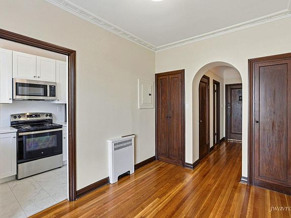Corner unitArt deco bathroomDining roomStainless steel appliancesShared roof deckRemodeled kitchenLarge bedroom