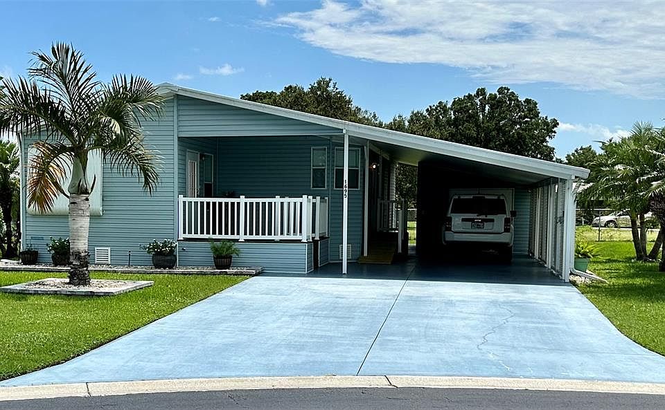 SEMINOLE COVE- Charming 2 bedroom, 2 bath, DWMH-on concrete slab, COMPLETLY FURNISHED! As you first drive up you will appreciate the large covered two-car carport, the beautifully landscaped yard, private well for irrigation, and the NEW 2021 Metal Roof. Stepping inside you will find an airy open layout; the kitchen comes complete with all updated appliances, dishes and a small island bar ready to entertain. The spacious master bedroom has mirrored double closets and a private bathroom and shower. Hurricane season is made simple with window shutters throughout, including two large brand-new shutters. Seminole Cove Condo Association is a 55+ community nestled in a quiet and secluded southwest corner of town. Close to shopping and restaurants. Full clubhouse with all the activities you will ever need and additional storage on site. Don't miss out on this opportunity, call today to schedule a showing before it's gone! Measurements are approximate, must measure for exact