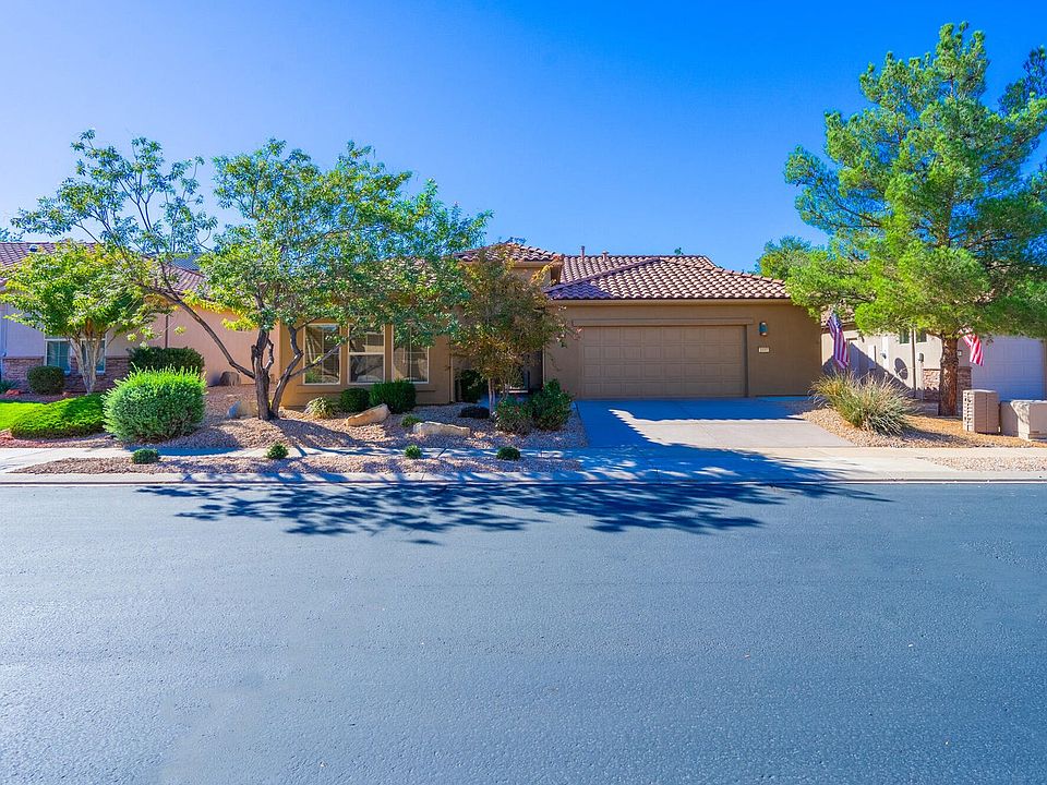 Lovely, well-kept home in 55+ community. 3 bedrooms, 2 bathrooms, 2.5 car garage with lots of storage. Home features vaulted ceilings, great room, quartz counters, composite granite sink, tile backsplash in kitchen. Extra pantry off laundry room. Upgraded Corian in bathrooms. New AC compressor in 2024. Fully fenced low maintenance backyard with water fall.