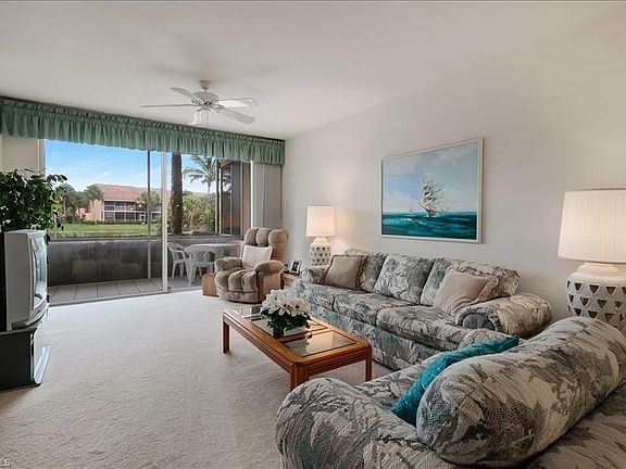 This well kept, first floor, one-owner unit offers beautiful water views. The pond features a landscaped island accessible by bridge that is well lit at night for a stunning night view. With two large bedrooms, two baths and large living room that opens to a spacious lanai, there is plenty of room for family and friends alike. There is plenty of storage with large closets, full size laundry room and detached storage closet. Falling Waters is well developed community with lush Florida landscaping. The community offers residents a busy calendar of events centered around the community's beautiful clubhouse and newly renovated pool to open in October of this year. This guard gated community offers private living with a central location close to shopping, dining and award-winning beaches.