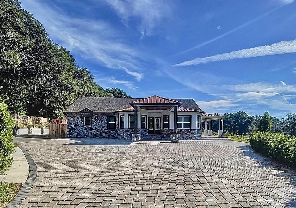Welcome to 16950 Spring Valley Road, Dade City, Florida – where country charm meets modern luxury! This exquisite custom-built home, nestled on 3.75 acres of fully fenced property, is a 2020 masterpiece that seamlessly blends elegance and functionality. As you enter through the main gate, the grandeur of this property unfolds before you. A massive custom paver driveway leads to a covered portico, crowned with a copper accented roof, setting the tone for the exceptional craftsmanship within. This 4-bedroom, 4-bath residence boasts a sprawling 2,974 square feet of living space, ensuring comfort and style for every lifestyle. Step inside, and you'll be greeted by the gleaming porcelain tile floors that lead you through the open floor plan. The kitchen, a chef's dream, features a huge island with waterfall quartz counters, stainless steel appliances, a custom range hood, and a beautiful stone backsplash. The living room and dining room, bathed in natural light from vaulted ceilings and quad-panel glass sliding doors, create an inviting atmosphere for entertaining friends and family. This home doesn't just stop at aesthetics – every bedroom has its own bathroom, and the primary bedroom is a retreat in itself. With a built-in TV unit, fireplace, spa-like en-suite featuring a walk-in shower with dual shower heads and a waterfall shower-head from the ceiling, it's a haven of relaxation. The entertainment possibilities continue outdoors with a large covered porch that wraps around the house, complete with an outdoor kitchen. The backyard patio extends to a courtyard which extends to an additional structure behind the main house, offering as a garage or entertainment space – the canvas is yours to paint. Convenience meets tranquility with quick access to the 75 freeway, placing Wesley Chapel and Tampa within easy reach. This luxury home is complemented by an office, an entertainment room with a beverage refrigerator, complete with countertop and apron sink, and a strategically designed laundry room. Don't miss your chance to own this country estate – schedule a showing today and make 16950 Spring Valley Road your forever home!