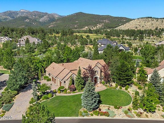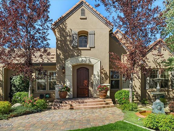 Gourmet Kitchen features Granite countertops, Miele dishwasher, Thermador cooktop, warming drawer, and pull-out cabinet shelves. Kitchen and Laundry were expanded to create extra space and storage. Second Living Room/Bar is impressively equipped with temperature- controlled wine cabinet, ice maker, and refrigerator drawer. Slate tile, hardwood floors, Alder baseboards, and remarkable built-ins throughout. Other recent improvements include new electrical in Kitchen, new interior garage steps, and recently repaired furnace. The home has two almost new water heaters, newer acrylic stucco, roof system, reinforced shear walls, insulated garage doors, and re-sealed and re-installed windows. Surround Sound in Family Room. Peaceful backyard is outfitted with a built-in BBQ, expansive paver patio, hot tub, full mature trees, and 11 rose bushes. Interior Courtyard includes cables that support drop canvas covering. Welcome to Montreux, Northern Nevada's premier private golf course community. This 24/7 security gated luxury community surrounds an 18-hole, Jack Nicklaus Signature Championship Course (Par 72), with world-class Clubhouse amenities. This home on 16956 Rue du Parc is conveniently located near Montreux's main entrance, enjoys easy access to the community's paver walking trail, and is just a short stroll to all the Clubhouse action. In only 20 minutes, you can be skiing at Mt. Rose Ski Resort or jetting off from the Reno-Tahoe International Airport. Beautiful Lake Tahoe is a just a 30-minute leisurely drive away.