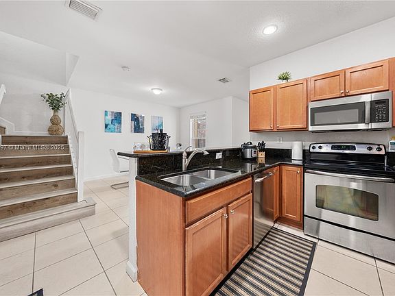 Welcome to this pristine residence in Kendall Square, located in the heart of West Kendall. This spacious 4-bedroom, 2.5-bath home offers a functional layout with ceramic flooring in the main living areas and brand-new laminate flooring on the stairs and bedrooms. Enjoy full privacy with no rear neighbors and the convenience of a large driveway that accommodates up to 4 vehicles, including a covered garage. Situated in a highly desirable family-friendly community, Kendall Square features resort-style amenities including a lagoon-style pool, fully equipped gym, playground, event room, and more. Within the community, you’ll also find a top-rated A-rated K-8 charter school, perfect for families seeking excellent education just steps from home. Low HOA fee of only $47 per month.