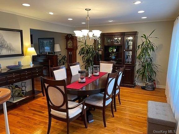Move-in condition Merrick Manor 4 bdrm 2 bath updated approximate 1809 expanded cape on oversized lot. Living room w/bay window, Kitchen, 17x24 vaulted den with wood burning fireplace, 150 amp electric plus another a panel for the den, 2 zone heat, 3 wall A/C units, 2 window units. Finished Basement, Sep. HW Heater, Hardwood floors, Updates include: Roof - 2004, 1/2 redone Dec. 2020, Boiler - January 2020. PVC fenced yard, 5 zone IGS, Attached 1 car garage. Convenient to all!! Won't Last!!