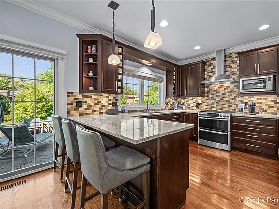 Welcome to 1696 Highland Ave, where refined design meets effortless living. Completely reimagined and REBUILT in 2015 (foundation excluded), this exceptional home offers an open-concept layout with 4 bedrooms, 4.1 bathrooms, a fully finished basement, EV-ready 2-car garage, brick paver patio, and numerous upgrades. The main level features light-filled living and dining areas that connect to the kitchen. Anchored by an elegant fireplace, the living room invites relaxation, while the dining room easily accommodates large gatherings. The kitchen showcases dark cabinetry, neutral countertops, a single-basin stainless sink, Culligan reverse osmosis system, and a full suite of stainless appliances. A well-placed powder room adds convenience, and a flexible room nearby can serve as an office or reading room. Gleaming hardwood floors span the main and upper levels, providing warmth and continuity. Upstairs, the primary suite impresses with double closets and an en suite spa-like bathroom featuring dual sinks, an oversized shower, and a separate whirlpool tub. One secondary bedroom includes a private full bathroom, while two other bedrooms share a dual-access bathroom. A laundry closet completes this level for everyday ease. The finished basement extends the living space with soft carpeting, a versatile bonus room, a full bathroom with steam shower, and a large utility room for storage. Outdoors, enjoy the EV-ready garage with an additional gravel parking space. Entertaining is effortless with a garage refrigerator, detached grill, two outdoor Sonos speakers, Unilock brick paver patio with fire pit, and included furniture. Additional highlights include professionally designed closets, room-darkening blinds upstairs, solid wood interior doors, and professional landscaping with perennials and sideline Arborvitae trees for extra privacy. NEW UPDATES include: steam shower in basement (2025), kitchen refrigerator (2025), concrete driveway sealed (2024), water heater with instant hot water (2024), sump pump with backup battery (2024), air ducts cleaned (2024), water softener (2023), Culligan reverse osmosis system (2023), concrete driveway replaced (2022), microwave (approx. 2021), dishwasher (approx. 2020), range with double oven (approx. 2019), two smart thermostats (within last 5 yrs), garbage disposal (within last 5 yrs). Every improvement has been executed by professionals for quality and longevity. Located near highly rated schools, including Glenbrook North High School, I-94 and I-294, running trails, golf courses, and retail, this residence combines thoughtful design, meticulous upkeep, and lasting comfort!