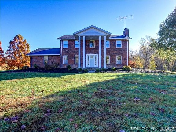 Call today to tour this stately, spacious 4-bedroom, 2.5-bathroom home situated on 5 acres only 15 minutes from Madison and 5 minutes from Scottsburg in the quaint community of Lexington, IN. Boasting 2,160 sq ft of living space, this two-story home features a spacious eat-in kitchen with stainless steel appliances and an adjoining dining room. This home offers 4 spacious bedrooms and 2.5 baths along with a full unfinished basement. Upstairs, you’ll find all four bedrooms, including a primary suite with a walk-in closet and bathroom. Replacement windows throughout. Step outside to enjoy such standout features as a large screened-in back porch which overlooks a stocked pond. This property offers more than a home—it’s a lifestyle. Enjoy a fully stocked pond with bass, bluegill, and carp, perfect for fishing or simply relaxing by the water. A charming gazebo sits next to the pond, providing the ideal spot to gather around a bonfire, unwind, and take in the views. You will enjoy watching deer roam. Be sure and notice the awesome fish in the pictures which was caught by a family member. The property boasts a pole barn garage with a roll-up door and workspace, and an attached two-car garage. There is also a ramp in the garage. House is being sold as is, but INSPECTIONS ARE WELCOME.