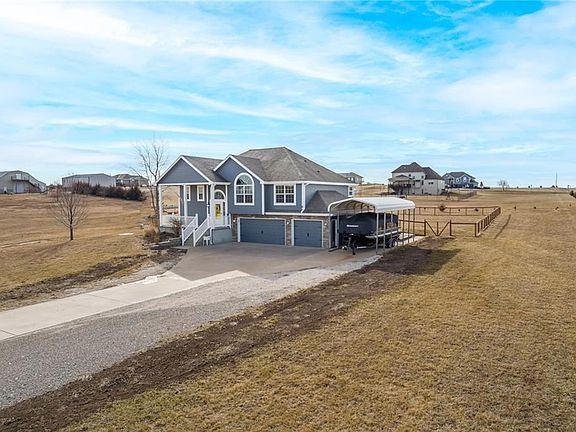 Basehor-Linwood School District! Out of city limits, in Leavenworth County, with your own space, yet close to town and highway access. This is a 4 bedroom 3 bath home sitting on just over 2 acres in Basehor-Linwood School District. The exterior features fresh paint, mature landscape, lovely covered front porch, and new backyard fence! Driveway has been widened. 12 foot carport on side of 3 car garage. Above ground saltwater pool on the east side of the property that is less than a year old. Under deck storage for all pool equipment and lawn care. Inside you will find freshly painted walls and beautiful painted kitchen cabinets with granite countertops. Vaulted ceilings, and a cozy gas fireplace! Primary bedroom has double vanity, jetted tub, separate shower, and a walk in closet. French doors in the primary bedroom give access to the large back deck! Laundry is conveniently located on the main floor living area. Downstairs is large rec room, 4th bedroom, and full bathroom. Seller is owner/agent. *Backyard fence being finished
