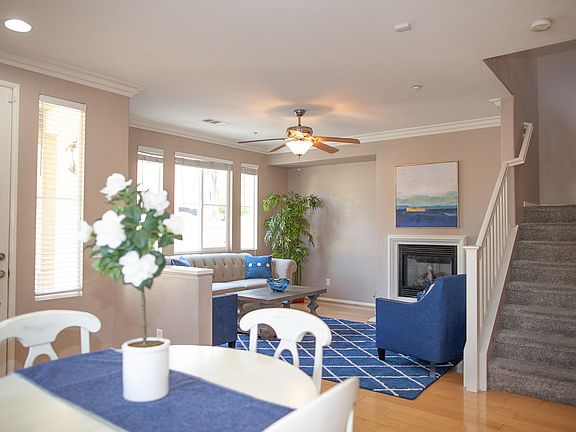 Located in 4S Ranch, this property is a corner unit and has a lot of natural light. At the ground-level you have a private patio, open concept living and dining area which opens to the kitchen, a powder room and a vented laundry room which then leads you to the 2-car garage. Walking up the stairs, you are greeted by approximately 20x15 ft DEN/OFFICE area. The second floor includes the primary bedroom with an ensuite and large walk-in closet, an additional two bedrooms, and a large full-sized bathroom. The property is conveniently located and walking distance to shops/restaurants, parks, and Monterey Ridge Elementary. Near top rated schools in the Poway Unified School District (Monterey Ridge Elementary, Oak Valley Middle School, Design 39 Campus, Del Norte High). Walking distance to elementary school and two community parks, shopping, dining, banking, library, fitness classes, and other essential services, etc. (Note: Photos are staged. The property is NOT furnished)