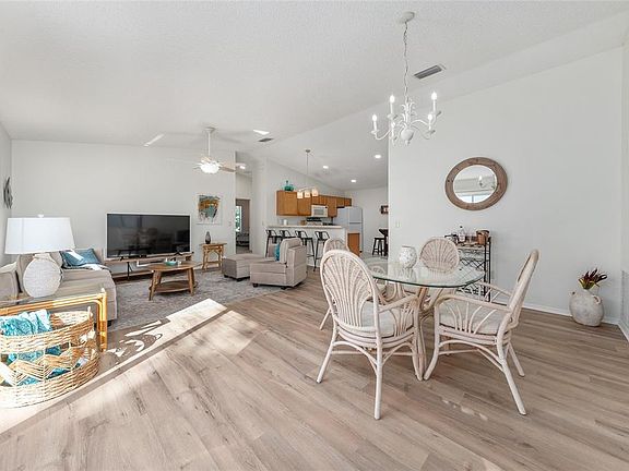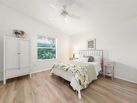 Welcome to this beautifully updated 2-bedroom, 2-bath Colony Courtyard Villa in the sought-after Village of Woodbury-BOND IS PAID! This charming home offers an inviting open layout with bright living and dining spaces, a well-appointed kitchen with breakfast bar, and a private screened lanai surrounded by refreshed landscaping (2024) — perfect for relaxing or entertaining. Turnkey property! Enjoy peace of mind with major updates already done: roof (2019), HVAC (2020), water heater (2021), new flooring (2020), dryer (2022), and dishwasher (2025). The spacious primary suite features a spacious walk-in closet and en-suite bath, while the guest room and second bath provide comfort for visitors. A one-car garage plus golf cart space add convenience. 2022 electric golf cart is negotiable. Located near golf, pools, shopping, dining, and recreation, this villa offers easy living in one of Florida’s most desirable active-adult communities. Move-in ready and beautifully maintained — come live the Villages lifestyle today!
