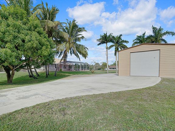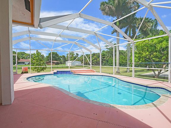 Welcome to your dream home! This stunning 4-bedroom, 3-bathroom home in Loxahatchee is surrounded by magnificent Royal Palm trees, creating a true tropical paradise. Situated on a spacious 1.50-acre corner lot with a paved road, this home offers both luxury and privacy. Upgraded hurricane impact windows thru-out! Step inside to find an immaculately maintained open floor plan, perfect for hosting friends and family. The beautiful screened pool area invites you to relax and unwind, while the chef's dream kitchen, complete with ample counter space and abundant cabinetry, makes cooking a joy. For car enthusiasts, the large 1125 sq ft (45 x 25) detached garage is a standout feature, offering enough space to house any collection, and the extensive & multiple driveways provide plenty of parking. The property is fully fenced with private gates, ensuring your complete privacy. Come experience this exceptional home, where every detail has been thoughtfully designed for your comfort and enjoyment. Your tropical Loxahatchee paradise awaits!