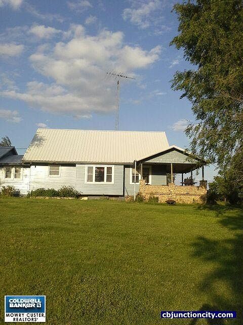 3.8 +/- acres of country living located 18 miles from Junction City. 3 bedroom 2 bath home with a partially finished basement. Second bath installed in 2017. 2 bedrooms on the main floor and 1 large bedroom. Original oak hardwood floor and trim on the main floor. 3 car garage, electrical panel in house and at the well. Pex manifold water system updated in 2017, barn, shed and grain bin are great for storage. Give us a call today to setup your showing.