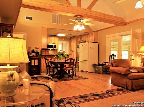 5.39 Acres in located in beautiful Utopia, Texas. This property features a 2 bedroom 1.5 bathroom home with vaulted ceilings and custom beams imported from Colorado, spacious split floor plan, enclosed front sitting room, private water well, owned water softener, gorgeous oak trees throughout the property, paved road, gated entrance, 2 car carport plus RV/Boat parking and workshop, many other building sites, Plus shared River Access!!! Did I say UNRESTRICTED, Yes UNRESTRICTED!!! Too many features to describe, Must See! If represented by another agent they must accompany client for showings to participate in commissions.