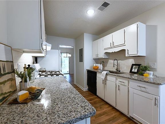 Welcome home to this updated 2 bedroom 2.5 bath end-unit townhome in a quiet Marietta community. Centrally located only 4 minutes to I-75 at GA-120 (Exit 265), KSU (7 minutes) the Marietta Square (10 minutes), Truist Park (12 minutes), and only 15 minutes to downtown Roswell. LVP flooring throughout both levels no carpet! The kitchen features granite counters and an eat-in Breakfast Nook with a bay window for lots of natural lighting. The Family Room features a Fireplace with a brick hearth and open Dining Area. Overlooking a serene wooded view, the oversized two-level deck provides additional entertaining area off the main level, while the second level deck offers a quiet place to relax off the Master Bedroom. The second upstairs bedroom also features its own full bath and walk-in closet perfect for a roommate arrangement! Convenient to shopping, dining, and top schools. 2-car parking pad in front of home. **APPLICATION REQUIREMENTS: Minimum 650 credit score, clean background report, and no past evictions. No smoking. Pets negotiable.** Available for move-in on 12/1/25.