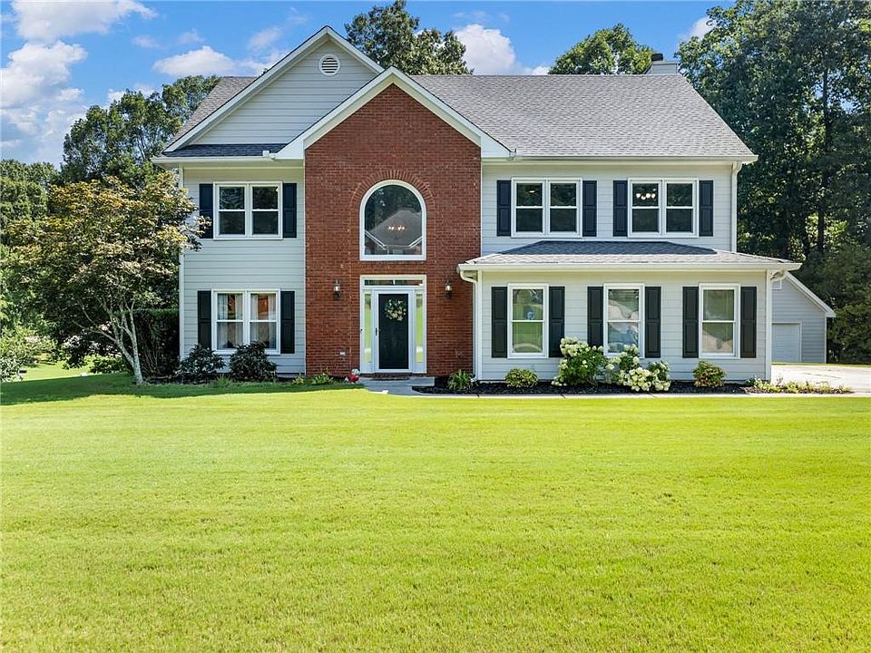 Gorgeous 5 bedroom 2-and-a-half-bathroom home located in the heart of Dacula. This well-maintained home offers an open floor plan, hardwood floors throughout the main floor, separate dining room, office or play area for the kids. The staircase with rod iron balusters brings you to the 2nd floor where your spacious master bedroom with vaulted ceiling is located. The master bathroom with a separate water closet offers privacy and comfort to the home. Two spacious bedrooms offer large closets and built-in bookshelves great for the kids' books or perfect for the home office plus two additional spacious bedrooms. The house is situated on a large lot with professional landscaping. Bonus! Outbuilding with air conditioning and electricity! Great for a workshop, man cave or just for extra storage. Perfect home with perfect location, rare find! A must-see home in Dacula and sought after Mill Creek School District!