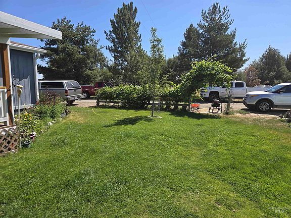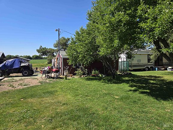 Tucked away down a private road in Gooding, this peaceful farmhouse sits on 10 acres of land with water shares—perfect for those dreaming of wide open space and room to grow. Bring your chickens, horses, and garden tools—this property is ready for your mini farm vision. The home features 3 bedrooms, 2 bathrooms, a charming kitchen with breakfast bar, a laundry room with built-in shelving, and a master suite complete with a walk-in closet. Enjoy mature trees that offer shade and privacy, multiple storage sheds, RV parking, and the bonus of solar panels for energy efficiency. Central air and a heat pump were replaced just three years ago. Country living with tons of potential!