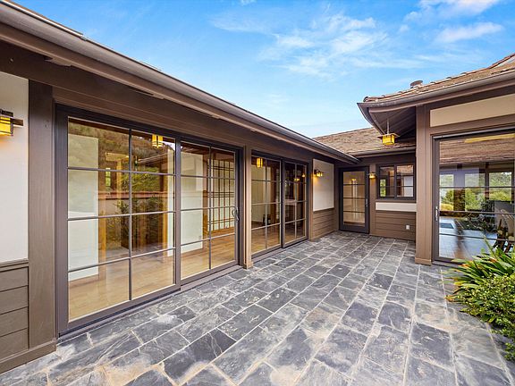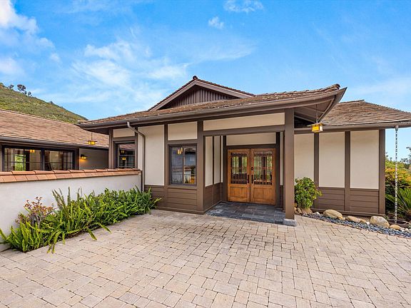 Purposefully designed and masterfully built in 2011 by local architect Wade Davis, this single-level Japanese-inspired custom home is a rare blend of architectural integrity and serene natural beauty - nestled on 8.5 acres of unmatched privacy all just minutes from Santa Barbara's Upper State street. From the moment you arrive to the end of the road in an ultra-private setting, the home welcomes you into a world of calm: clean architectural lines, rich woodwork, and handcrafted details create a warm, grounding atmosphere throughout. Shoji-style sliding doors and a tea-room-inspired dining area with courtyard access offer an authentic nod to Japanese aesthetics, while natural materials and a soft, neutral palette connect the indoors with the surrounding landscape. The gourmet kitchen, outfitted with custom cabinetry and electric appliances, blends functionality with minimalist beauty. The primary suite offers a peaceful escape, with doors to the view patio, walk-in closet, and modern bathroom with radiant heated stone floors. Two additional bedrooms, both with sliding doors to the patio and gorgeous hall bathroom with radiant heated floors complete the space. Other home features include an all-electric infrastructure, open-concept kitchen, living and dining areas with access to outdoor spaces, gorgeous stone fireplace, separate laundry room, central air conditioning and pass through garage. Step outside to explore the many patio spaces, terraced gardens, winding footpaths with fruit trees, serene oak trees, and 360-degree views of the quiet rolling foothills ideal for meditation, morning tea, or sunset gatherings. Every detail reflects a deep reverence for nature and a modern approach to wellness within a private canyon setting. Experience the best of Santa Barbara living close to all the amenities of Upper State Street, trailheads and downtown Santa Barbara and within the coveted Peabody Charter School district. Please, no drive-bys - property is not visible from the street and access is gated. www.1697sanroquerd.com