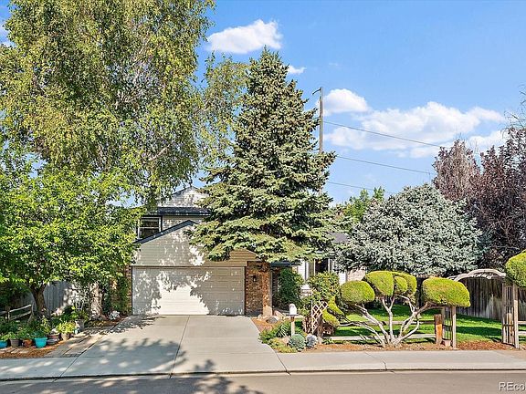 Welcome home to this inviting retreat designed for both indoor comfort and outdoor living! The highlight of this property is the stunning backyard oasis, complete with multiple sitting areas, lush landscaping, and a sparkling, well-maintained pool surrounded by an expansive concrete patio. Two side-yard sheds provide convenient storage and house the pool equipment. Inside, you’ll be greeted by a private entry that opens into a cozy family room featuring built-in bookshelves and a charming brick fireplace. The open tri-level layout feels spacious, with a large dining room and an open kitchen with new stainless steel appliances and quartz counter tops. A main-level bathroom offers a walk-in shower and a generous vanity. Upstairs, you’ll find three comfortable bedrooms and an additional full bath. The fully finished basement offers a flexible space with a flooring allowance so you can customize it to suit your lifestyle—whether you need a home office, workout room, playroom, or guest retreat. Perfect for gatherings of all sizes, this home is ready to host endless memories, especially in your very own backyard pool. A true delight for all ages, this property blends comfort, functionality, and fun! Close to the Trails Recreation Center, Shopping and Cherry Creek Schools.