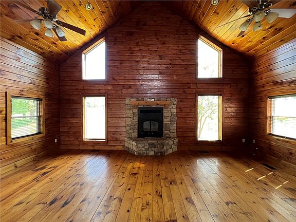Check out this stunning lodge near Devil's Den State Park in West Fork. The main house features 4 bedrooms & 3 full baths on three levels, and two enormous house-length covered decks. Downstairs would make a great game area. This property could be used as a family retreat, short term rental business, or development potential (buyer to confirm suitability with city and/or county). 2 bedroom, 1 bath garage apartment would be great for an extended or blended family or an additional income opportunity. Additional photos to follow soon.