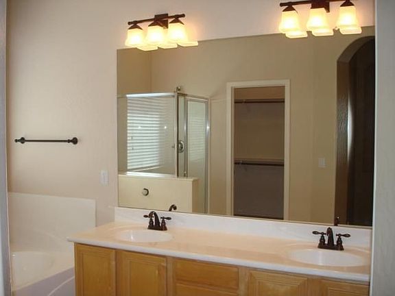 This is a 4 bed 2 bath split floor plan with an inviting formal dining and living room. The kitchen features beautiful granite countertops, stainless steel appliances; granite stone sink with a bronze rubbed faucet and 42-inch maple cabinets. A large island is perfect for entertaining and cooking.(Kitchen also plumbed for gas stove) Family room with a media niche, pre-wired for surround sound & vaulted ceilings. Built-in granite desk in the hall. Oversized lot with plenty of room to enjoy the mature trees, sparkling pool and a dog run along the side of the home. The 3car garage w/ epoxy coated floor & a soft water loop. The laundry room is pre-plumbed for a utility sink. Great community close to Home Depot, Target, restaurants and other shopping