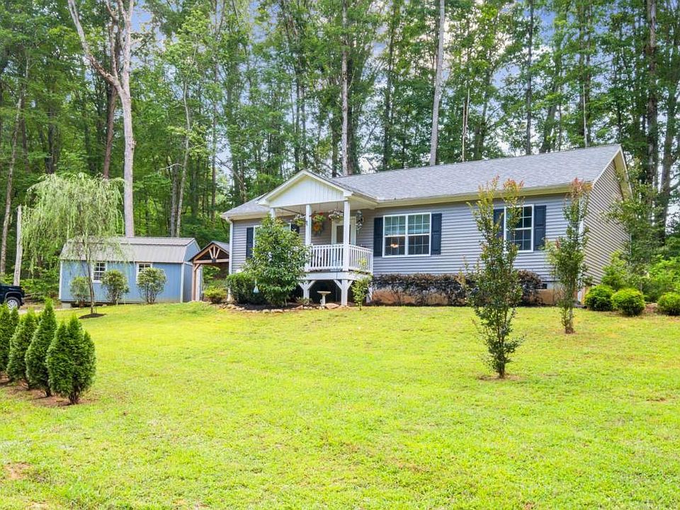 Welcome home! This beautifully maintained ranch home with covered front porch and side porch is a nature lover's retreat. Prepare to be impressed as you step into the spacious family room. Kitchen includes an island and built-in shelving. Enjoy the gazebo with views of majestic hardwood trees, birds, deer and other wildlife. Utilize the shed for all your lawn equipment and storage needs. Home is minutes away from shopping, dining, parks, water tubing, and hiking trails!