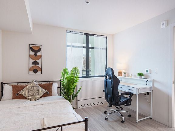 The perks of a brand-new building with all-new furnishings and appliances, including a full kitchen, washer and dryer, dishwasher, microwave, and modern beds and desks. Relax or study in the bright, open living room, or unwind on your private balcony.