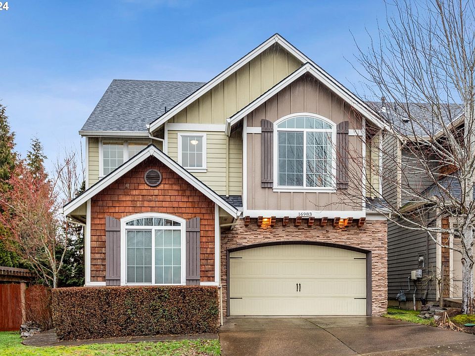 Elegant Pacific NW gem on corner lot w/ open floorplan! Former model home with high-end finishes & exceptional detail throughout including coved ceilings, crown molding, hardwood floors, wainscoting, & recessed lighting. High 9+ ft ceilings on BOTH levels provide abundant light & luxurious feel. Gorgeous open kitchen w/ slab granite, custom cabinetry, SS appliances, & built-in buffet. The primary suite will impress w/ coved ceilings, towering arched picture window, walk-in closet, and spa-like bath w/ dual vanity, soaking tub, & tiled walk-in shower. Fully fenced yard with trex deck, fruit trees, & mature arborvitae for privacy. At the end of a quiet dead-end street. Conveniently located near shopping, schools, parks, Nike, & Intel. Don't miss!