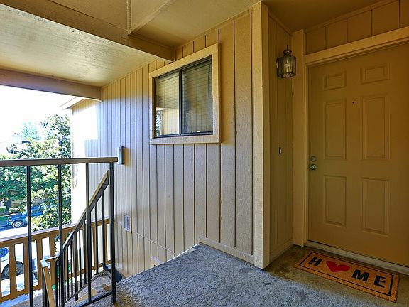 PERFECT STARTER HOME!! Bright top-floor unit. Tile entry opens to living room accented with large windows, granite-faced fireplace, high ceilings in dining area, and slider leading to balcony with view of the trees. Kitchen comes with granite counters, breakfast bar, stainless steel microwave, dishwasher and sink, tile floor, and freshly painted cabinets. Spacious Master Bedroom has large closet with mirrored doors. Generous sized spare bedroom with mirrored closets doors. Indoor laundry with full size washer & dryer. Oversized 1-car garage with plenty of room for shelving/storage. Refrigerator, washer & dryer included. Complex amenities include Community Pool, Spa, Clubhouse, and Tennis Courts. Close proximity to commute routes, hiking & biking trails at Henry Coe Park and Lake Anderson