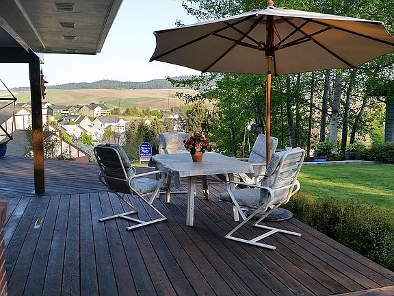 Custom built to take in the Paradise Ridge view over the city with a floor plan that will allow ALL your friends to enjoy it also. Huge master bedroom with 2 walk-in closets in the well appointed bath and doors to a balcony for enjoying the morning sun. The beautiful European Tile Stove will heat the whole house with few logs & little attention. The landscaping is beautiful & stays watered with the automated sprinkler. drip system that allows the owners to leave in the summer with no worries. Too many features to list. Come see. All Anderson windows, Pella doors 3/4 ft soffit overhangs. Fantastic views from an in town up scale, close to the Univ home. Walking distance to Uof I. Owner will carry contract for sale ( mortgage) w/ substantial down payment.