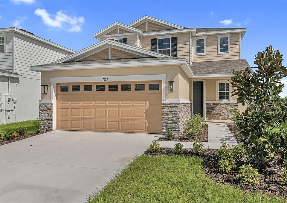 **Take advantage of special financing + Flex Funds on quick move-in homes** The Palm features two stories of smartly designed living space. On the main floor, an inviting kitchen is flanked by a great room and a dining nook—offering access to a relaxing covered patio. A mud room provides a convenient entry point from the garage, and a flex room is ready to fill in as a study, game room or whatever else your family requires. Upstairs, a loft provides another versatile hangout. Other second-floor highlights include a laundry room, a full hall bath and three bedrooms—including a generous owner's suite with a private bath and walk-in closet. Upgrades include, bedroom with full bath on first floor, double sink in m bath and guest bath, covered patio, Optional window at bath 2, range, dishwasher, microwave. Upgraded white cabinets with 42" uppers, white Quartz countertops in kitchen and guest baths, Extra pre-wires for ceiling fans , carpet on second floor except wet areas, ceramic tile flooring to first floor and all wet areas upstairs, smart garage door opener, upgraded single bowl sink in kitchen and a video doorbell. **Options may vary by community, so see your sales associate for details. These offers are available for select homes on a first-come, first-served basis.