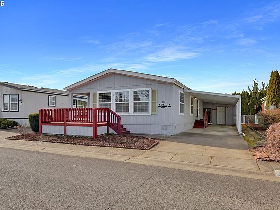 Discover the perfect blend of comfort and community nestled within the highly sought-after Woodland Park Estates – a gated community that welcomes all ages! Step into a spacious open floor plan of Space #261 with vaulted ceilings that amplify the sense of space and light. The huge kitchen is a dream, boasting a vaulted ceiling, skylight, and an abundance of cabinets with convenient pullouts, making storage and organization a breeze. Retreat to the primary suite featuring double sinks, a generous linen closet, and a walk-in shower designed for relaxation and ease. The additional bedrooms are equally inviting, perfect for guests, a home office, or your creative space. Enjoy the fenced, low-maintenance yard—ideal for pets, gardening, or outdoor gatherings. A handy tool shed provides extra storage, while the oversized carport ensures ample parking. Located close to a scenic park and open area, it’s easy to stay connected with nature and community. Stay comfortable year-round with forced air heating and an efficient heat pump. Community amenities are second to none, offering everything you need for an active, social lifestyle:•Swimming Pool & Indoor Spa – Perfect for relaxation and recreation.•Community Center with Fully Equipped Kitchen – Host gatherings or join community events.•Fitness Center – Stay fit without leaving the neighborhood.•Playground & Basketball Court – Fun for all ages.•Billiards Room, Library, & Banquet Hall – Entertainment and leisure options abound.•RV Storage Area – Extra space for your recreational vehicles.•Pet-Friendly Environment – Your furry friends are welcome, too!Don’t miss this incredible opportunity to own a move-in ready home in Woodland Park Estates—a community that offers not just a house but a lifestyle. Schedule your tour today and step into the vibrant, welcoming neighborhood you’ve been searching for!