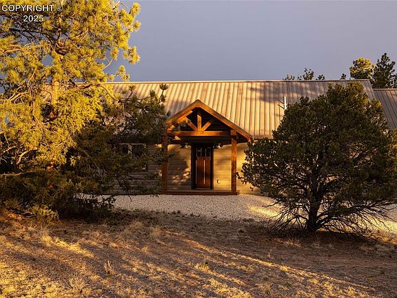 There are homes you simply live in—and then there are homes that define the way you live. This 2-bedroom, 2-bath home built in 2022 is positioned to capture unobstructed panoramas of the Sangre de Cristo range, where every sunrise and sunset becomes a tapestry of nature's beauty. From the moment you step inside, the design speaks in hushed tones of luxury and craftsmanship. Vaulted ceilings clad in rich aspen wood soar overhead, creating a dramatic sense of scale while wrapping the space in warmth. Expansive windows and dual sliding glass doors erase the boundary between indoors and out, filling the home with natural light and framing mountain vistas from nearly every angle. The covered patio feels like an extension of the living room, inviting you to slow down, breathe deeply, and savor the quiet beauty of your surroundings. The heart of the home—a kitchen designed as much for artful living as for cooking—features custom handcrafted alder cabinetry, elegant Corian countertops, and premium stainless steel appliances. Whether you’re entertaining friends or preparing an intimate meal for two, every detail is built to inspire. The ground-level primary suite offers a serene escape, combining modern accessibility with refined comfort. Upstairs, a spacious loft provides versatility—a home office, guest quarters, or creative studio—with views that elevate every task or moment of inspiration. The exterior is clad in TruLog steel siding, ensuring both striking curb appeal and low-maintenance durability. Inside, the open-concept floor plan flows seamlessly, blending clean architectural lines with organic materials to achieve a timeless aesthetic. What makes this home truly extraordinary is not just its design, but its setting. Nights are painted with stars so bright they rival the city’s finest chandeliers. Mornings begin with silence broken only by the wind in the trees or the call of a hawk overhead. Call today to schedule your showing and see what dreams are made of.